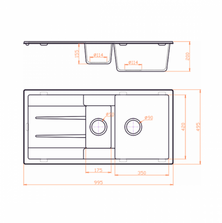 Кухненска мивка в комплект със сифон,цедка,щипка и комплект за монтаж.