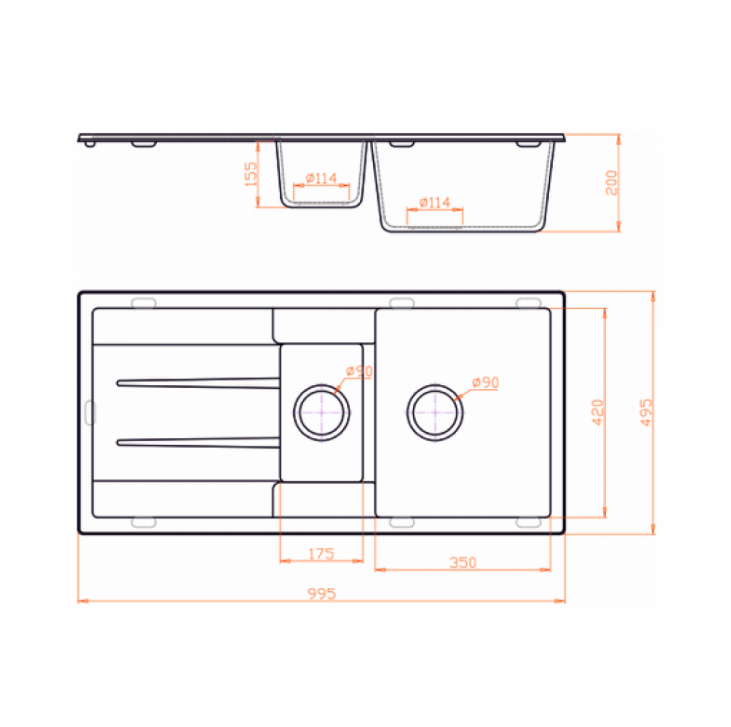 • Материал: Композитен материал, съчетаващ гранит и акрил.