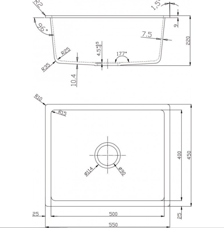 - Материал: Гранит (композитен материал)