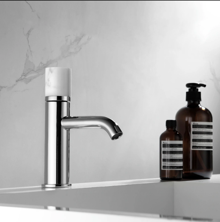 Дизайнерски смесител за мивка Joan Marmo WHITE 24601-424A-MB KARAG (хром и бял мрамор)