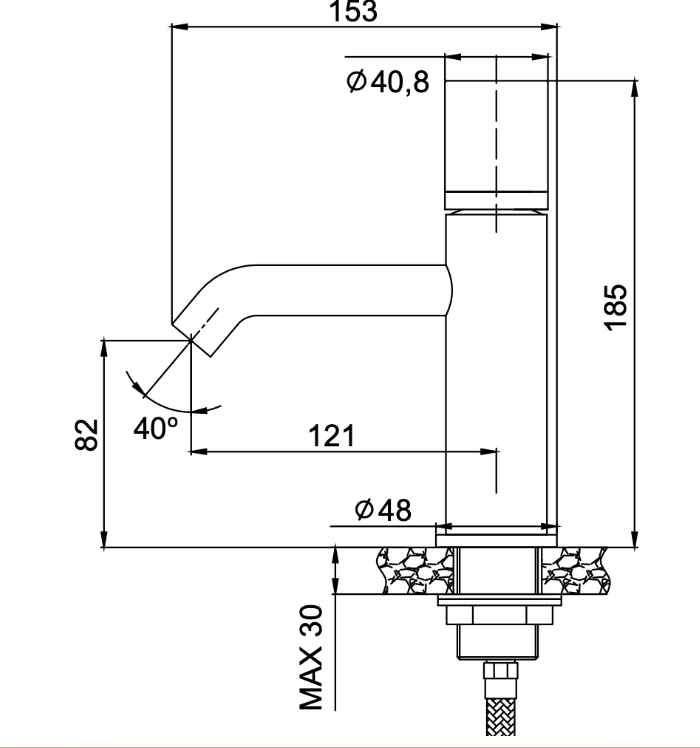 - Издаденост на чучура 121мм