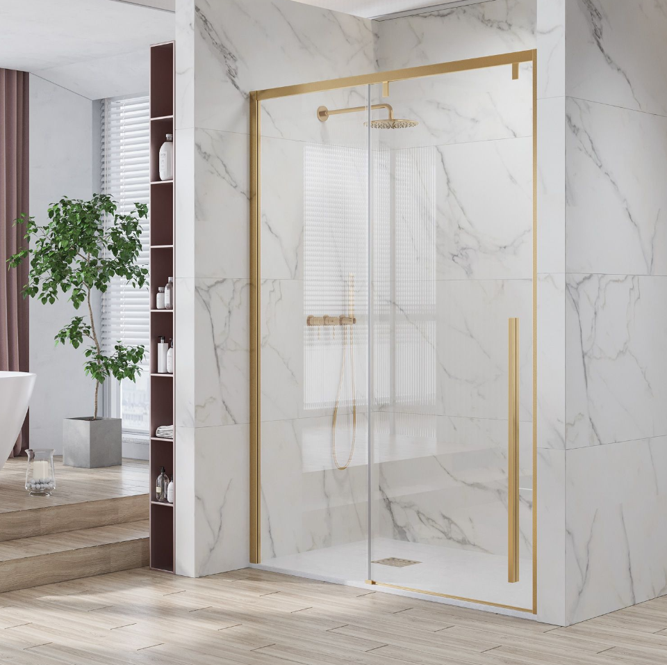 Параван с една плъзгаща се врата 120-150×200, 8мм, прозрачно стъкло SANTORINI 400 GOLD MAT NANO KARAG