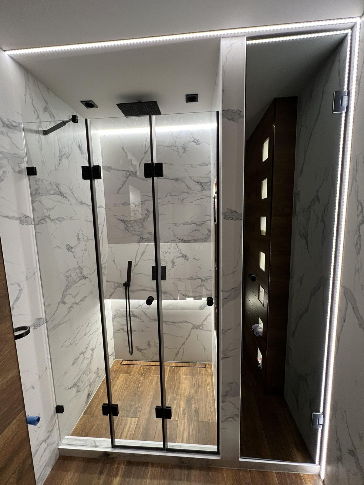 Всички стъкла са закалени, с дебелина 8 мм, гарантиращи здравина и безопасност.