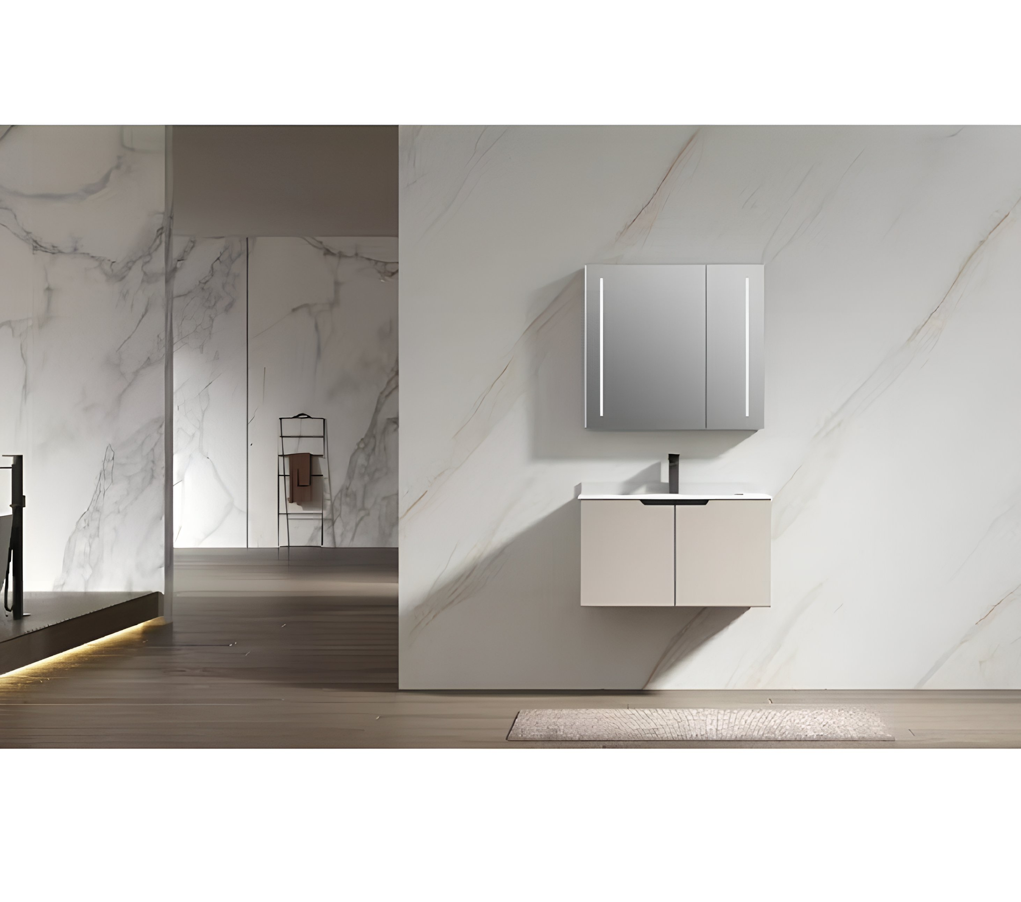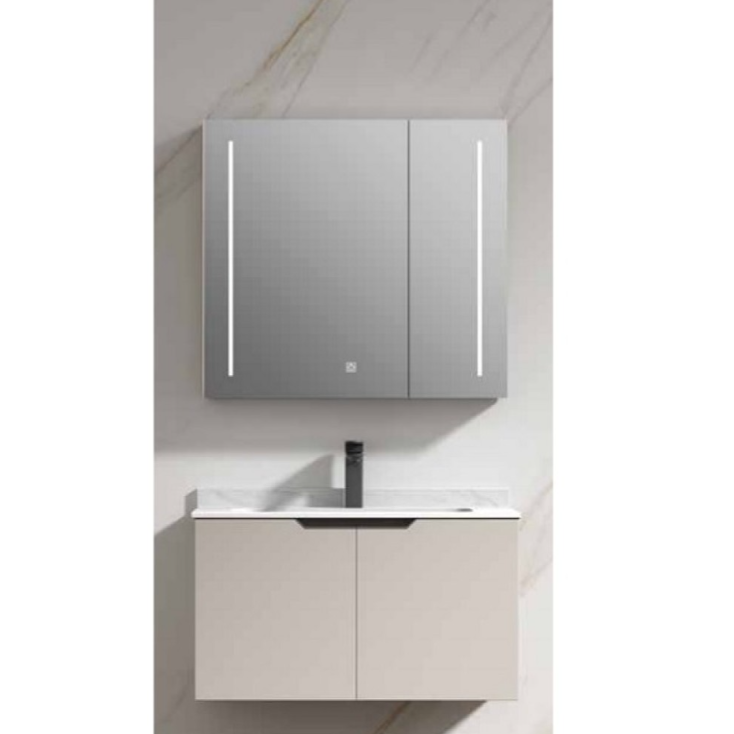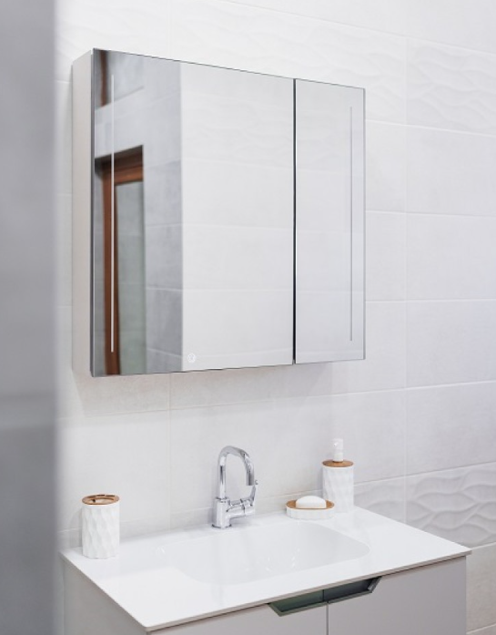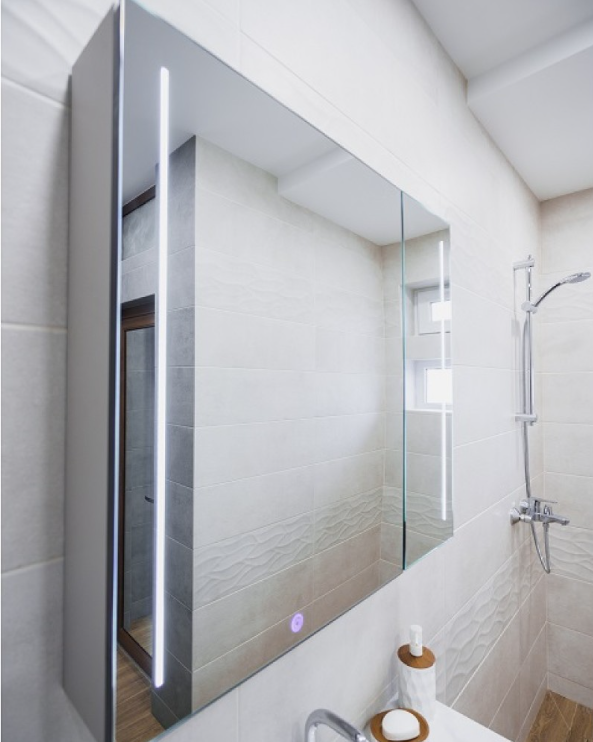 – Горен шкаф за баня от PVC с LED огледало с функция димиране