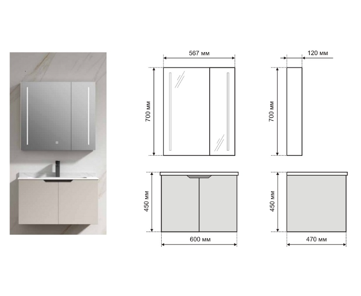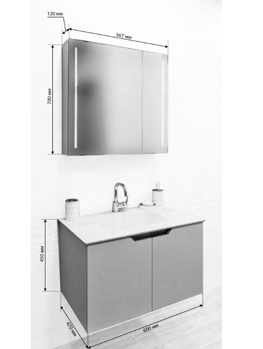 долен шкаф с умивалник: 600х470х450 мм
