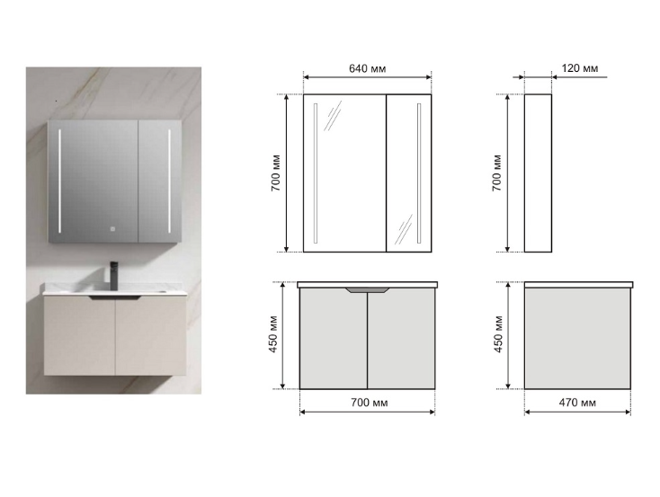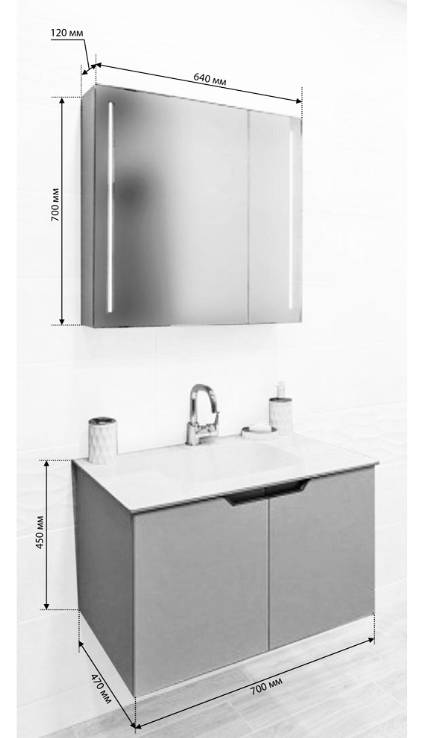 долен шкаф с умивалник: 700х470х450 мм
