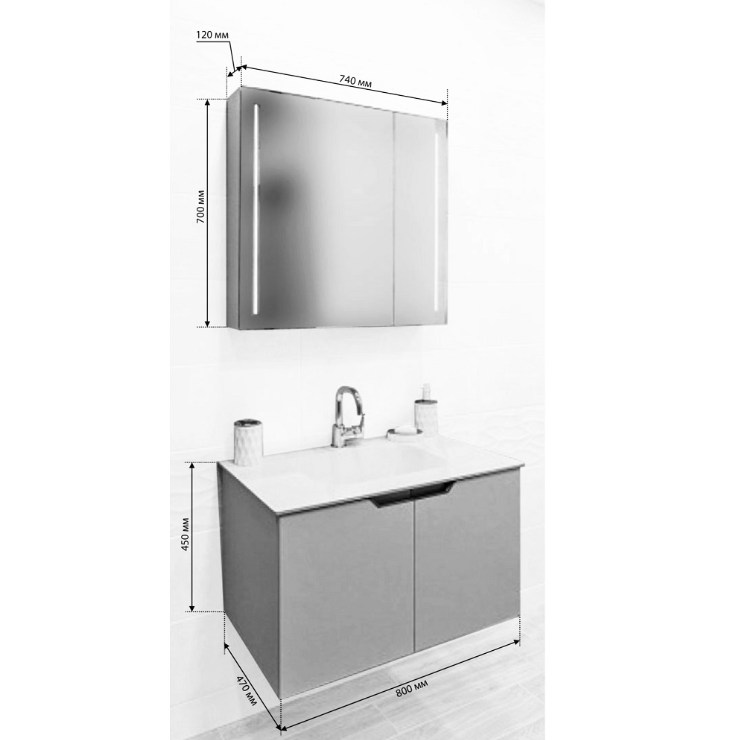 долен шкаф с умивалник: 800х470х450 мм