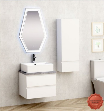 - PVC плот и чекмеджета: Мебелите са изработени от водо- и влагоустойчив PVC материал, което ги прави идеални за влажната среда в банята. Долният модул е конзолен (за стенен монтаж) и разполага с плавно затваряне (soft close).