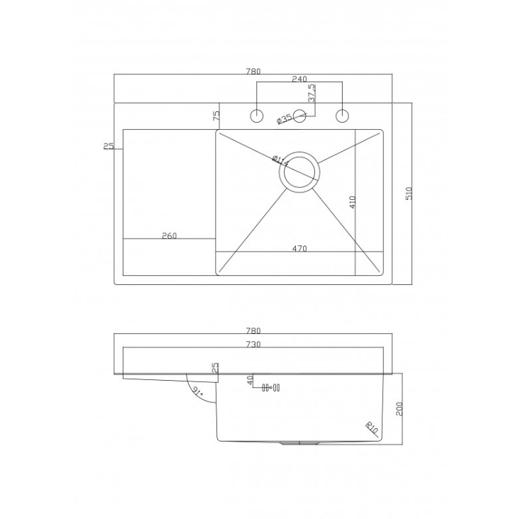 Размер на мивката: 78*51см.