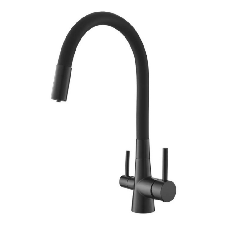 Кухненски смесител с 3 функции, черен мат, с глава Sedal, аератор Neoperl с 2 функции, меки връзки Tukai