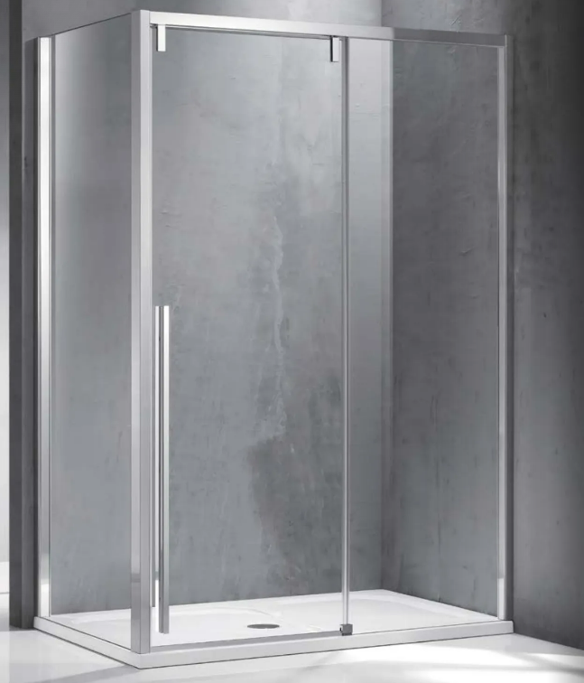 Модулна система с фиксирана страна и плъзгаща се врата с магнитно плавно затваряне, с прозрачни стъкла, 8мм и хром профил ( Изберете размери)