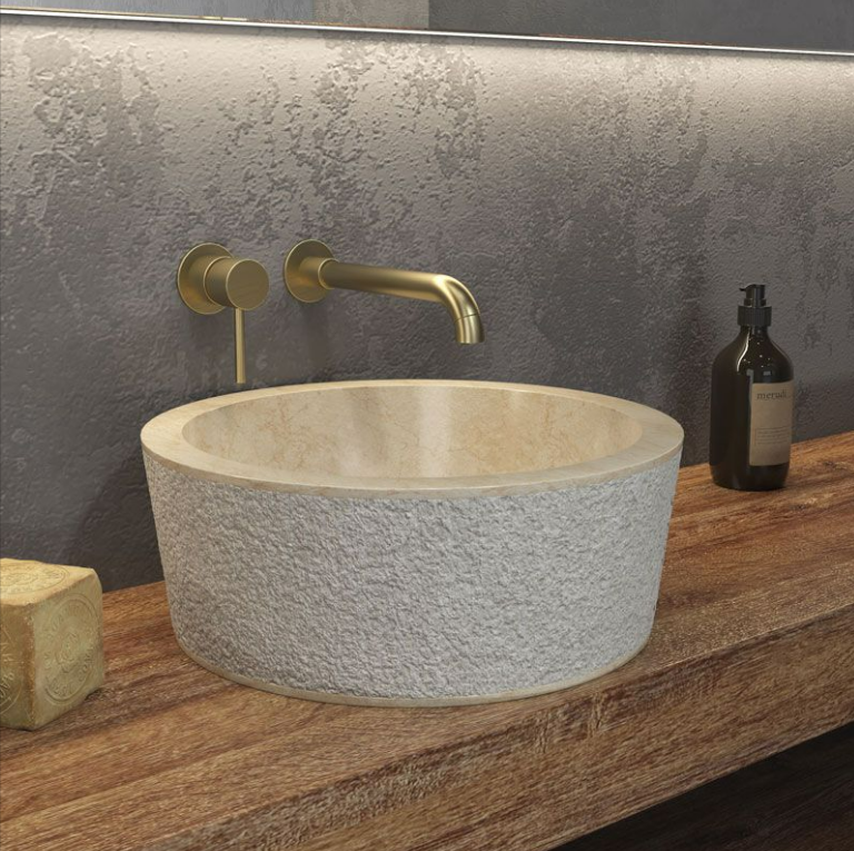 - Основна характеристика на естествения камък е наличието на различни нюанси, микроорганизми или дупки, които не са “дефекти”, а част от естествеността на продукта. Поради тази причина всеки умивалник е уникален и се различава по цвят, форма и размер.