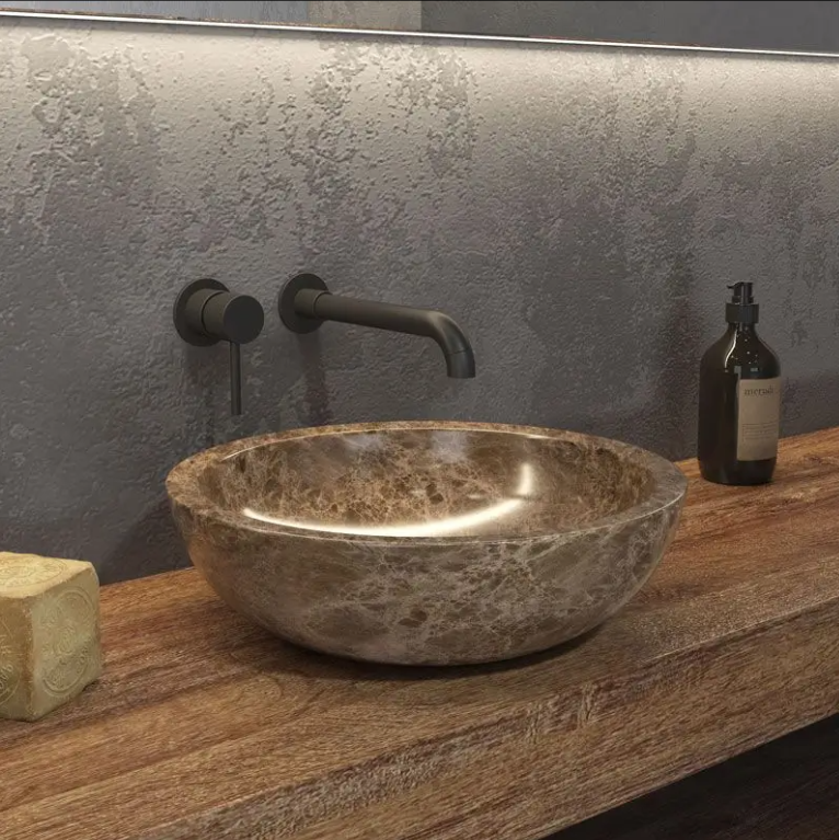 Умивалникът ELENA SBP GREY е изработен от естествен камък и е продукт на занаятчийство, а не на масово индустриално производство. Основна характеристика на естествения камък е наличието на различни нюанси, микроорганизми или дупки, които не са “дефекти”, а част от естествеността на продукта. Поради тази причина всеки умивалник е уникален и се различава по цвят, форма и размер.