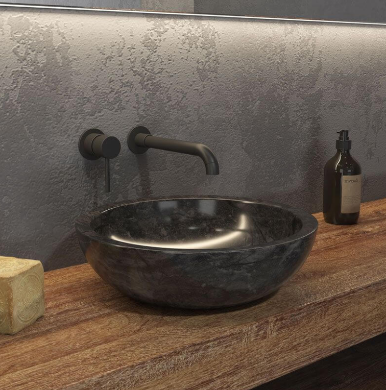 Умивалникът ELENA SBP NERO е изработен от естествен камък и е продукт на занаятчийство, а не на масово индустриално производство. Основна характеристика на естествения камък е наличието на различни нюанси, микроорганизми или дупки, които не са “дефекти”, а част от естествеността на продукта. Поради тази причина всеки умивалник е уникален и се различава по цвят, форма и размер.
