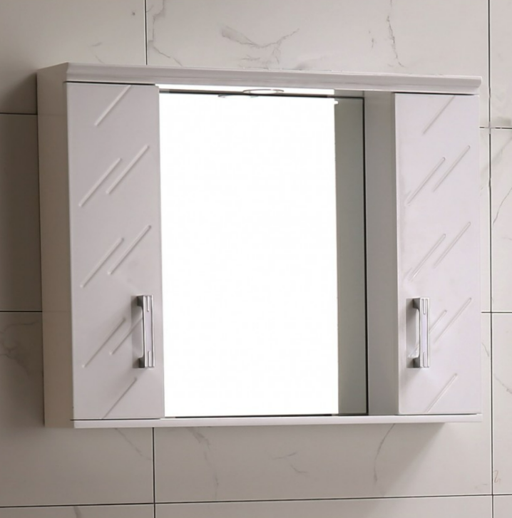 Горен огледален PVC шкаф за баня с LED осветление.