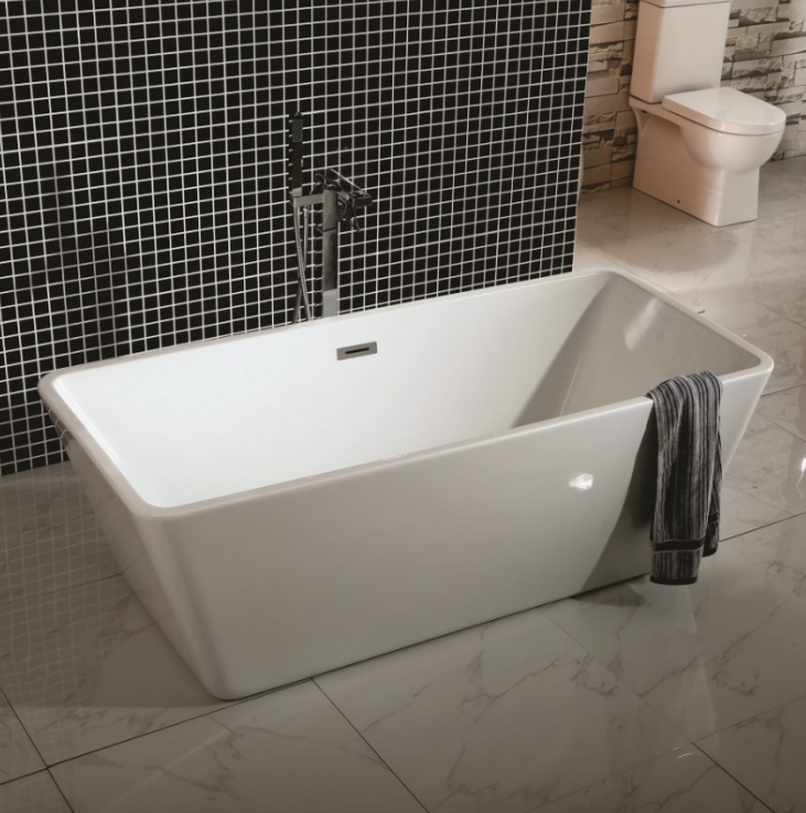 Свободностояща акрилна вана с рамка от неръждаема стомана, ABS крачета и покритие, което е от подсилено фибро стъкло.