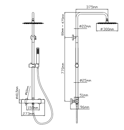 Термостатна душ система SC418M1231 ARTEMIS BLACK KARAG