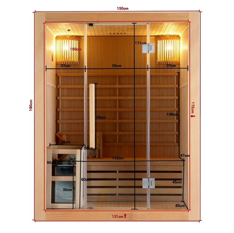 - Включени в комплекта са вулканични камъни, агрегат, ведро, термометър, часовник