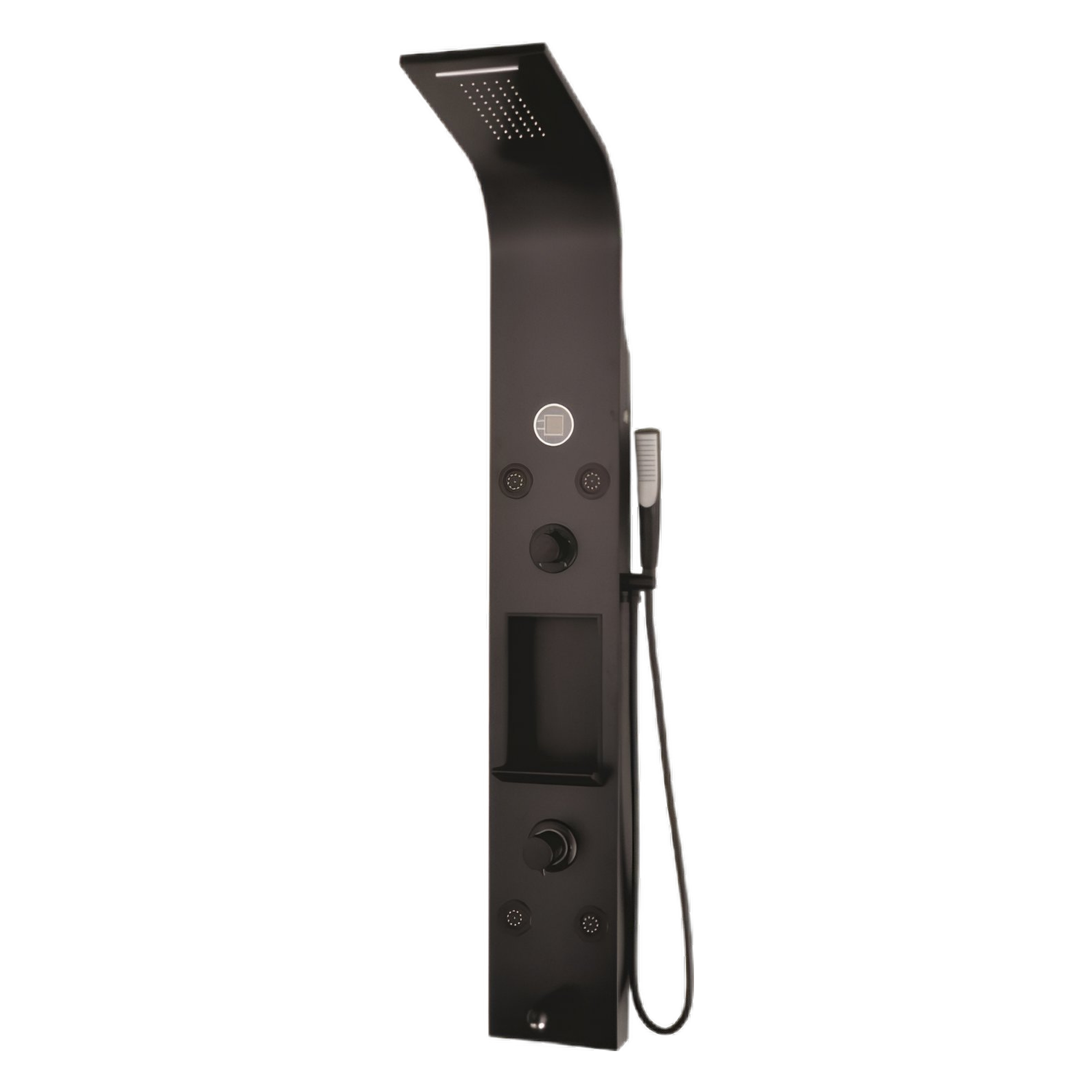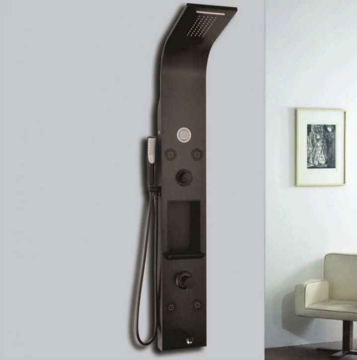 Алуминиев черен корпус, пита: 5*10 дюзи с гумени накрайници, функция водопад, 4 бр. черни дюзи, 1.5 м шлаух, пластмасов черен чучур, с нов температурен дисплей, със Sedal глава.