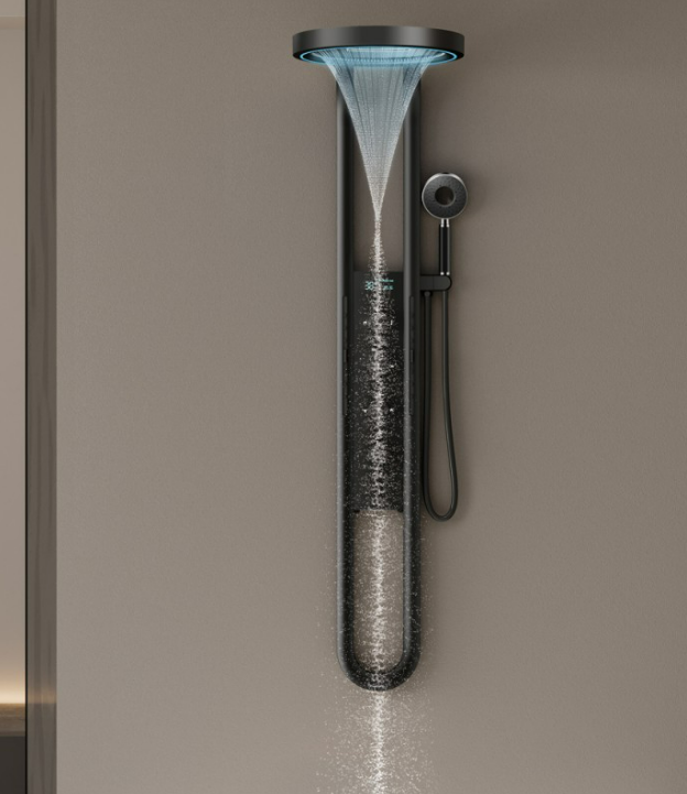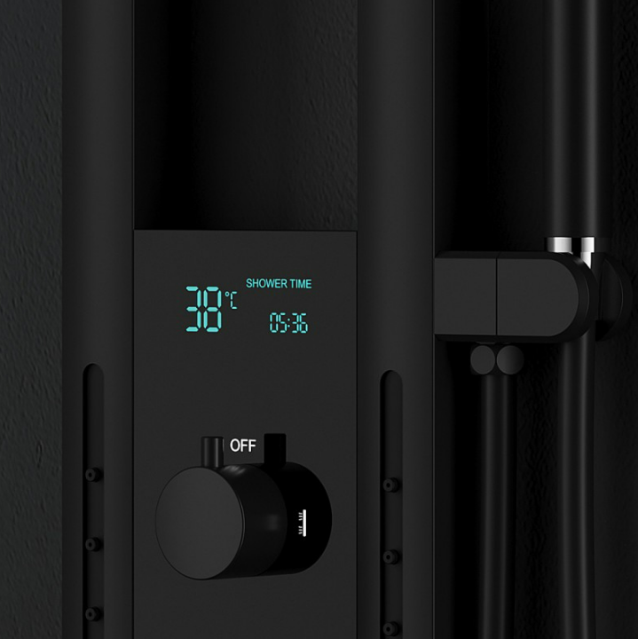 Панелът разполага с горен душ с две функции – водопад и струя, управлявани чрез отделен превключвател.