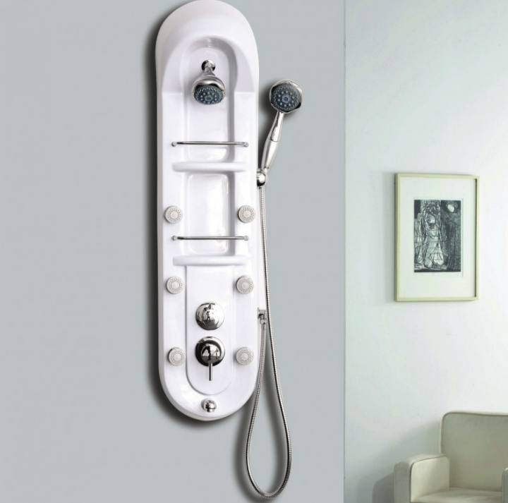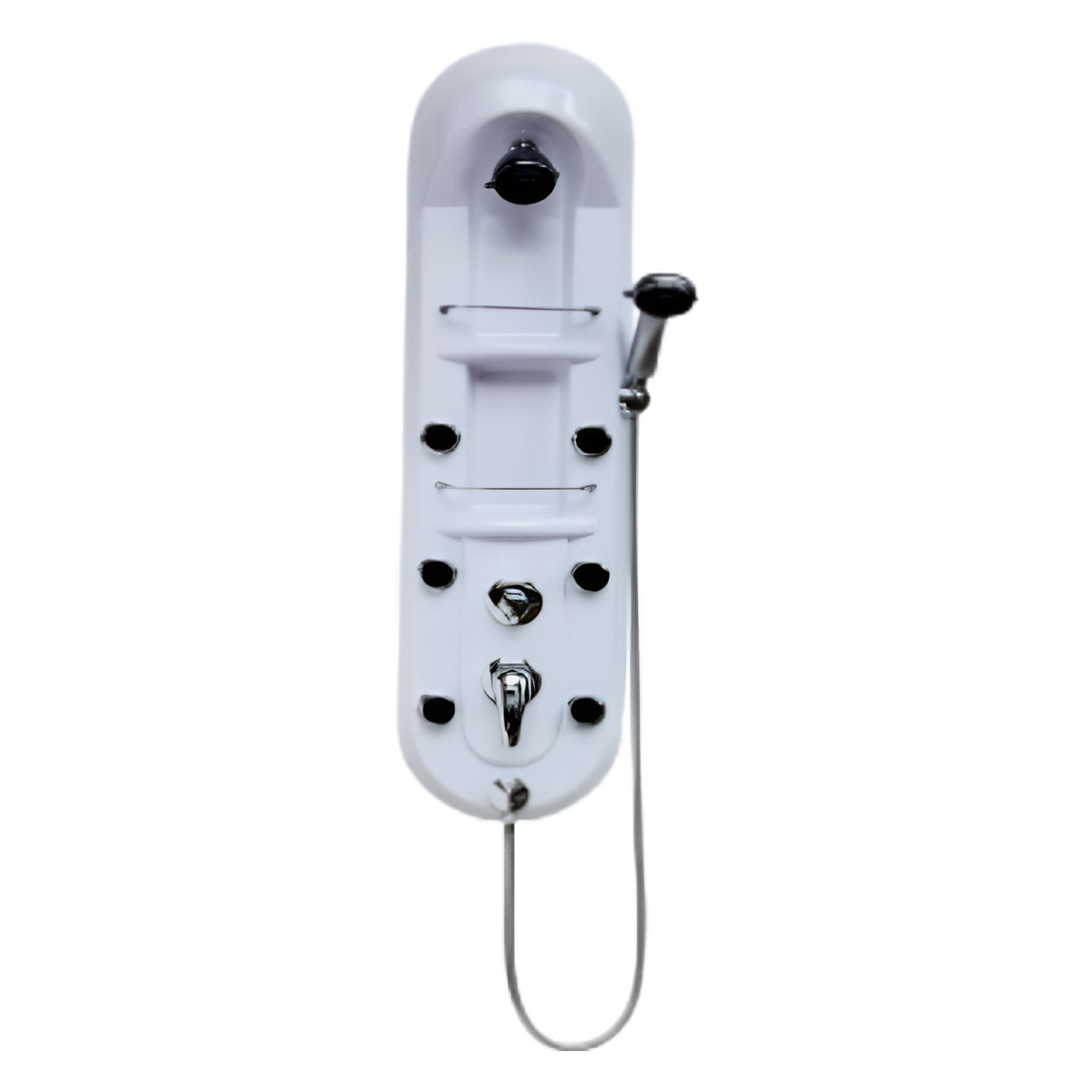 ABS чучур, бял, без ъглови инсталационни компоненти, ръчен душ, пита, закачалка отстрани на панела, със Sedal глава.