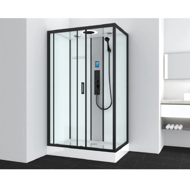 Затворена правоъгълна хирдомасажна кабина BOSTON BLACK е идеално решение за всяка баня. Многото функции, с които разполага, превръщат вземането на душ в истинско удоволствие. Високото качество на материалите гарантира дълъг екслоатационен живот.
