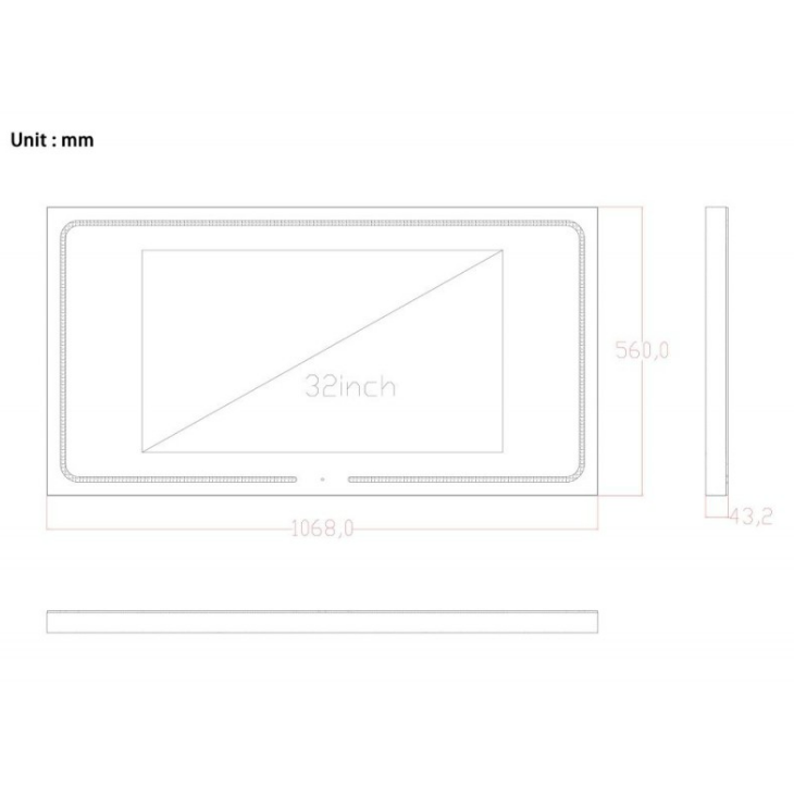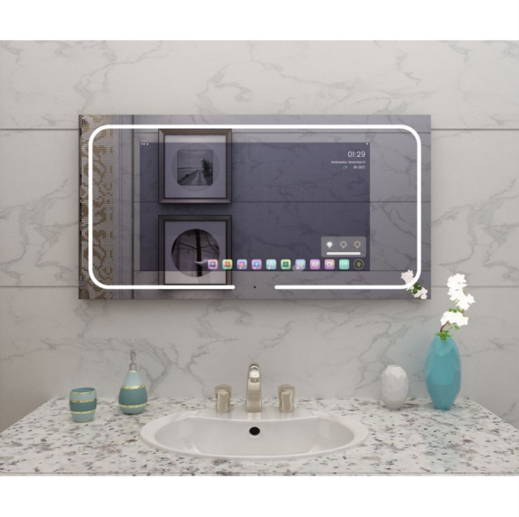Смарт огледало с вграден 32″ сензорен екран, работещо с Android 11 и осигуряващо бърза и плавна работа благодарение на 4 GB RAM и 32 GB ROM за приложения и медии.