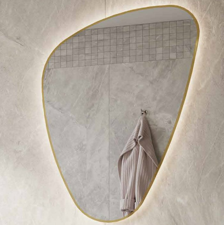 Oгледало за баня с нестандартна форма, LED осветление 80см и златна рамка ELENA GOLD KARAG