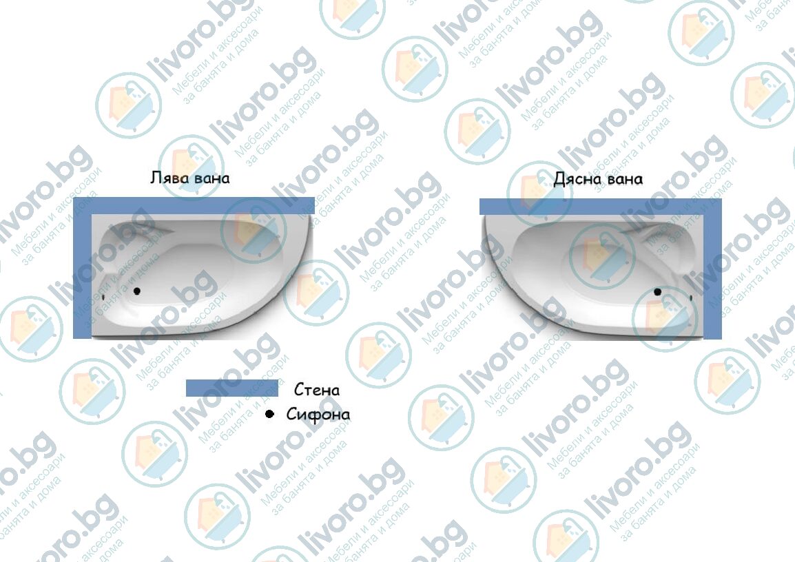 Акрилна вана Ница 120/120 см., 130/130 см., 140/140 см.