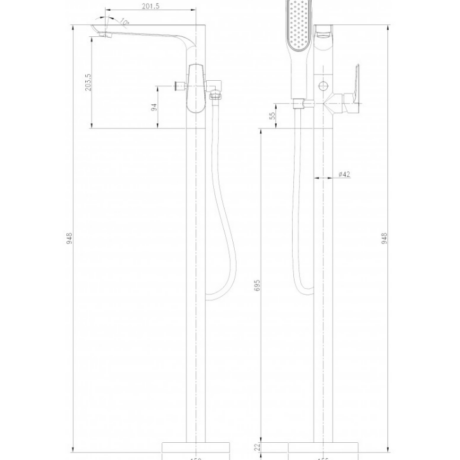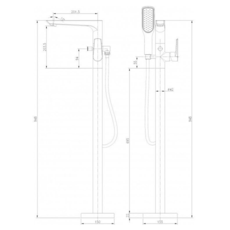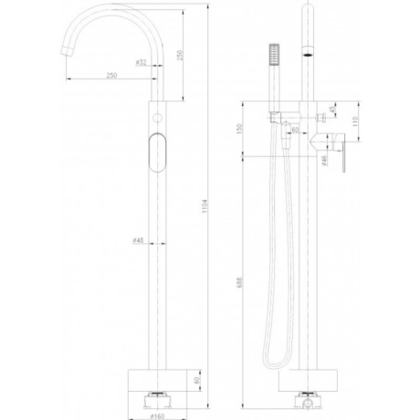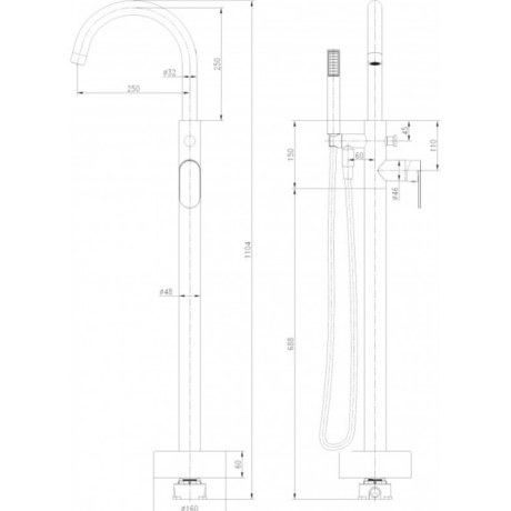 Месингов смесител за вана в черен мат с подово захранване ICL 8213B