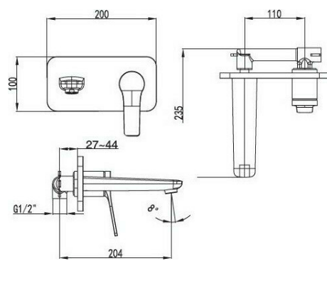 Стенен смесител за умивалник с тяло за вграждане INNA 23586 KARAG
