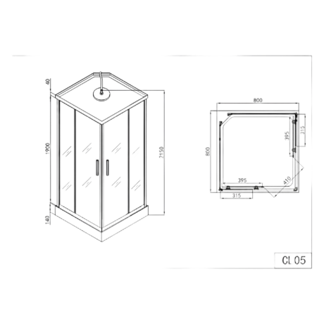 Правоъгълна душ кабина Karag Lea 400 & L-3811 Chrome с прозрачно стъкло 6 мм и хром профил