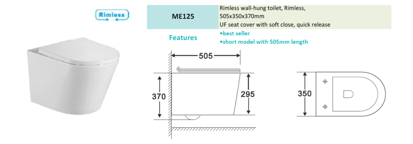 Конзолна тоалетна чиния ME125 T RIMLESS KARAG